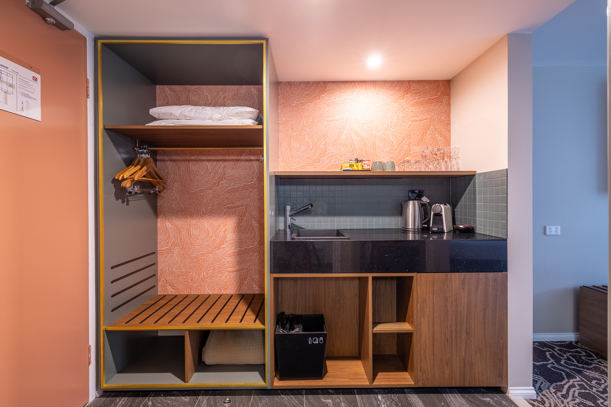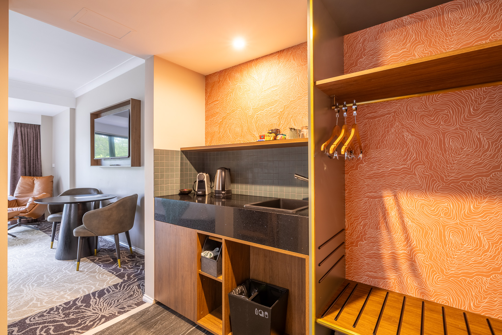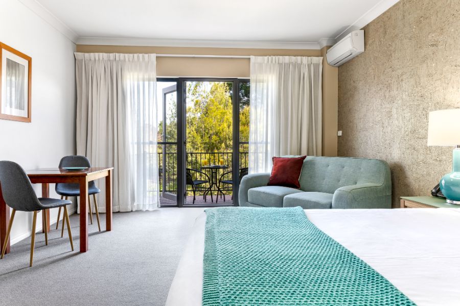 The ensuite bathroom offers indulgence with a two person walk-in shower, luxury amenities and our signature towelling robes. The room is air-conditioned and includes a massive Smart TV, seating area and workspace with a docking shelf for your electronic devices.