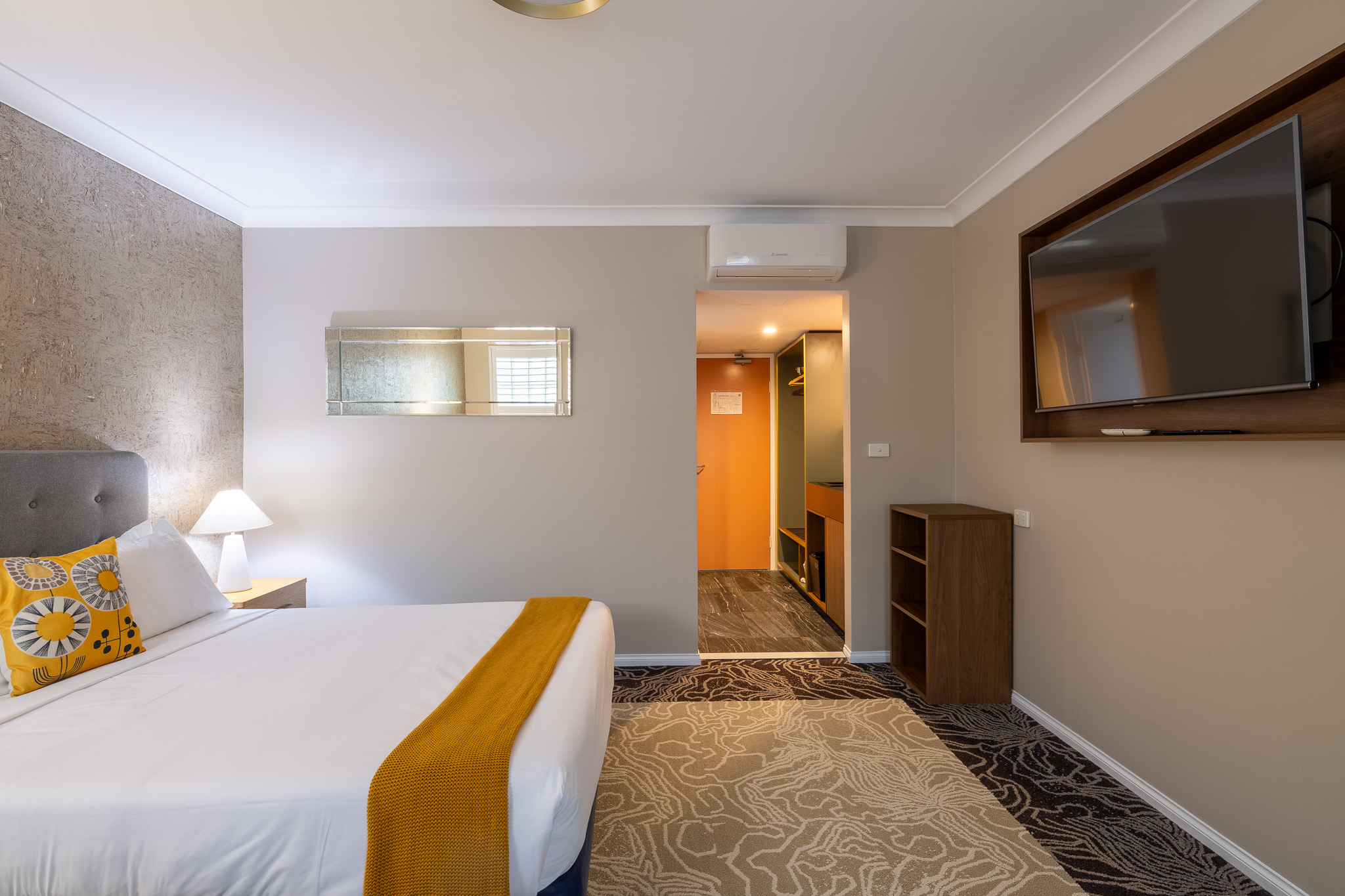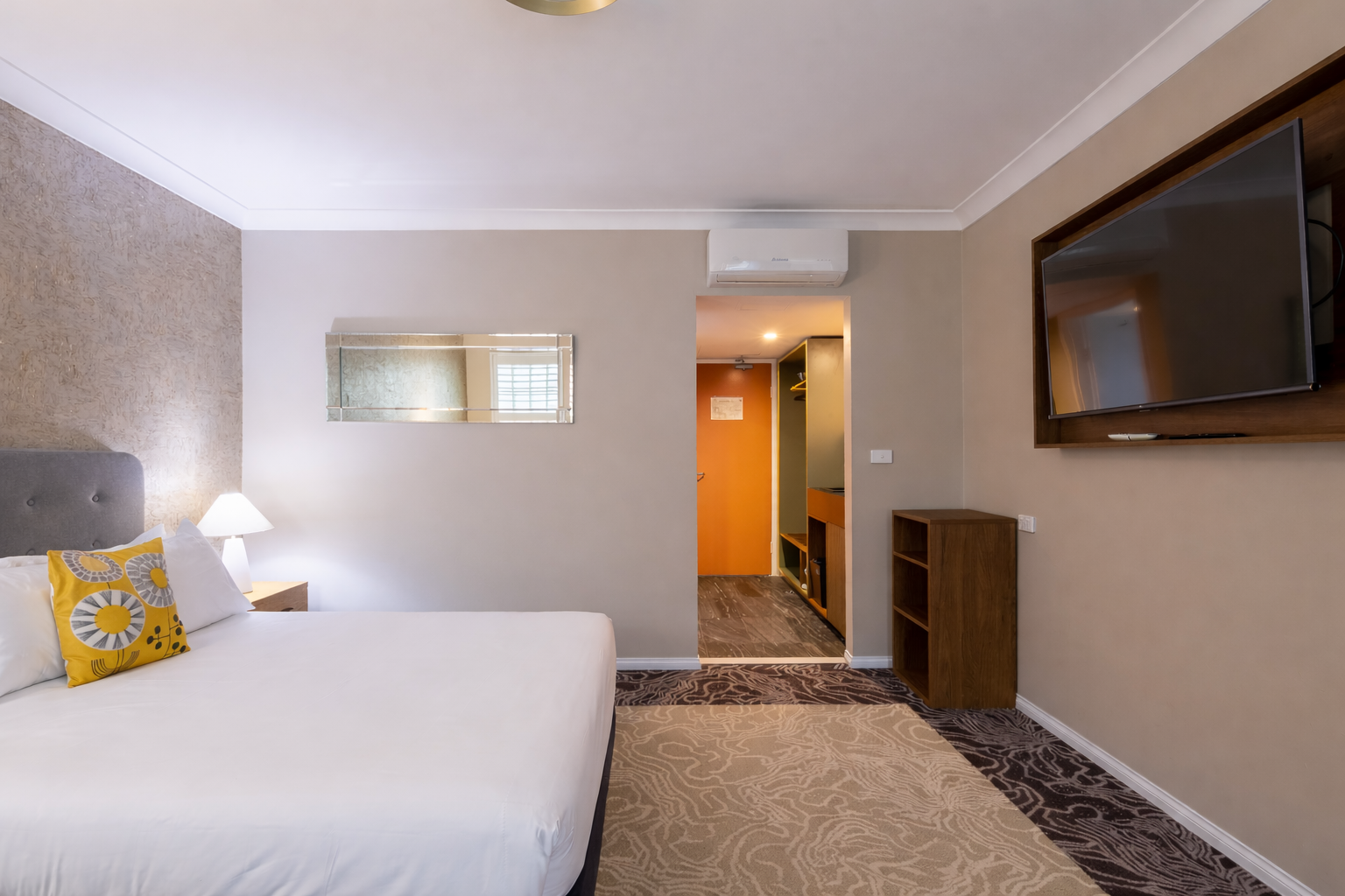 Rooms are air-conditioned and configured with either a Queen Bed and includes a large Smart TV, a desk and workspace with a docking shelf for all your electronic devices. The private ensuite bathroom features a with walk in shower, hairdryer and complimentary amenities you’ll love.